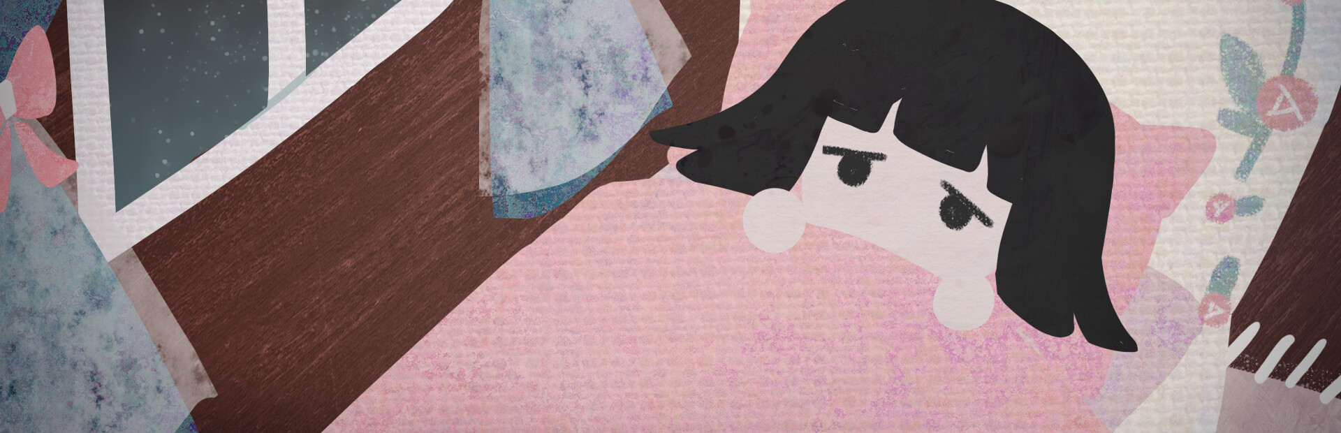 「眠れない。」 可愛らしくてちょっとだけ怖い、絵本のような幻想的な世界で、ステッカーを使ってお化け退治をしましょう。